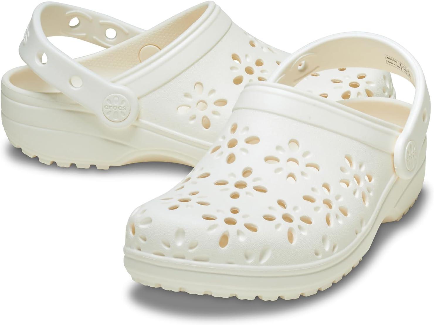 It's the iconic clog that started a comfort revolution around the world, now in a fun new range of floral prints! Channel your flower power anytime with these gorgeous floral graphics. Crocs Classic Clogs offer lightweight Iconic Crocs Comfort, a print for every personality, and an ongoing invitation to be comfortable in your own shoes. Find Your Size: We recommend sizing down (e.g. if you are a 7.5, size down to a 7). Ethylene vinyl acetate upper and insole. Unlined. Lightweight and Fun Water Shoes: These Crocs for men and women feature lightweight iconic Crocs comfort. Ventilation ports add breathability and help shed water and debris quickly, making these the perfect water shoes. Designed to Fit: These slip-on shoes are easy to take on and off, while being extremely durable. Plus, these walking shoes for women and men offer pivoting heel straps for a more secure fit. Slip-on style in a round toe silhouette. Ethylene vinyl acetate outsole.