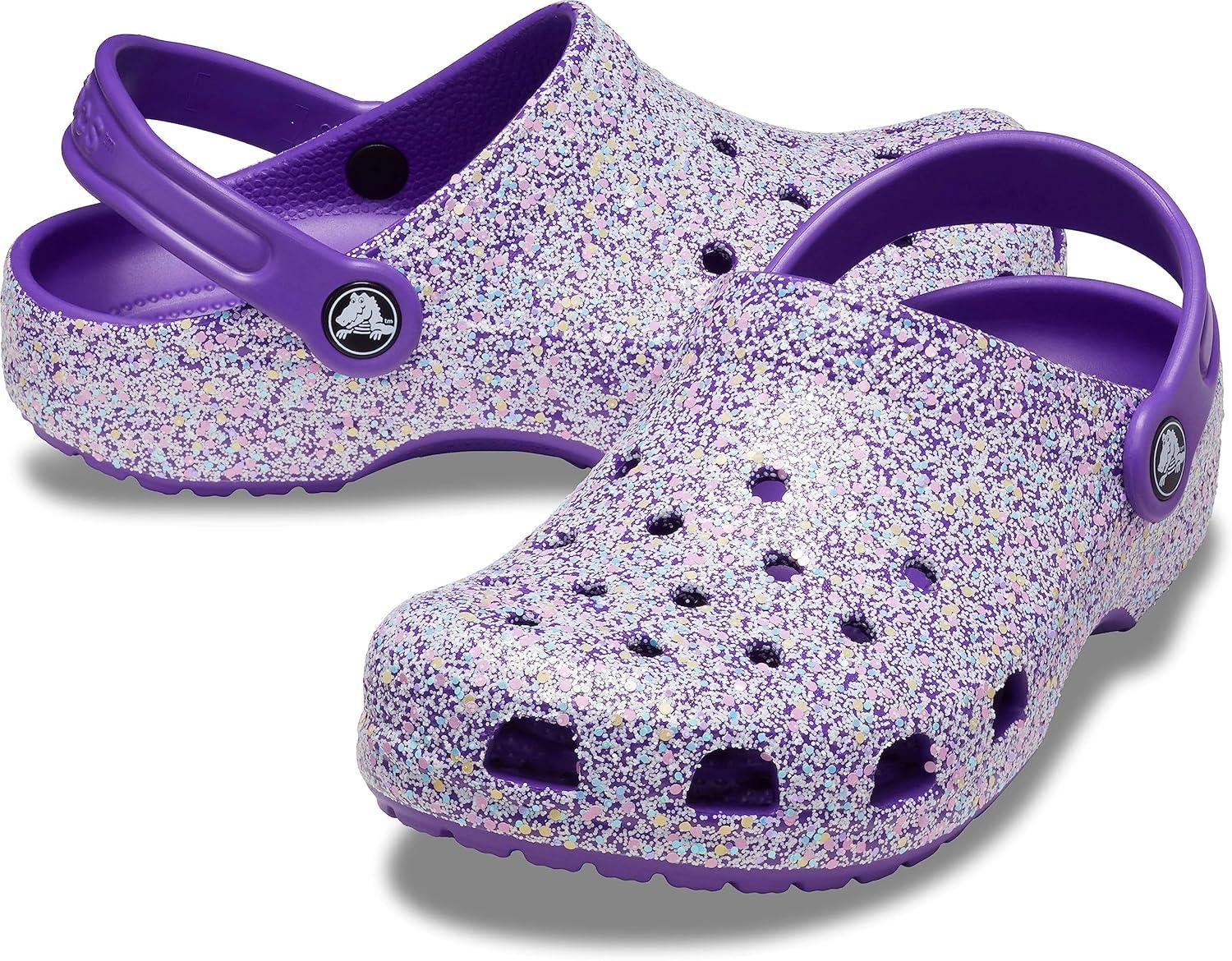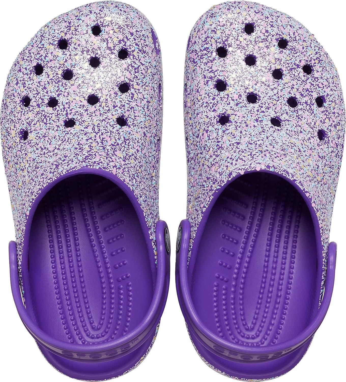 Crocs Kids’ Classic Glitter Clog(Neon Purple/Multi)