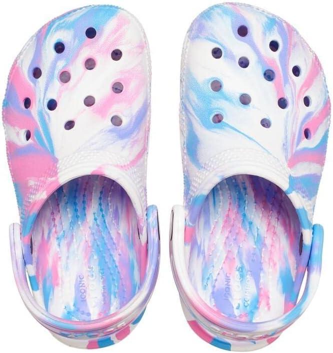 All-new marbled effects refresh the iconic clog that started a comfort revolution around the world, charmed kids everywhere and made parents fall in love with their easy-to-wear, easy-to-clean design! Our new marbled Croslite foam creates a colorful effect that is completely unique. While all marbled shoes have the same wavy look, no two shoes are exactly alike. Crocs Classic Clogs feature lightweight Iconic Crocs Comfort and a color for every personality, and remind kids of all ages to go out and play.