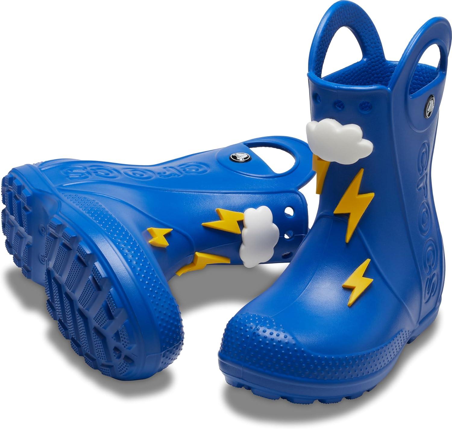 Kids can enjoy Crocs comfort even on the rainiest days. Kid's rain boot are fully moulded Croslite material with lightweight cushioning, comfort and reflective heel logo. They are available in bright colours with a waterproof build that keeps puddle-jumping feet cozy and dry.