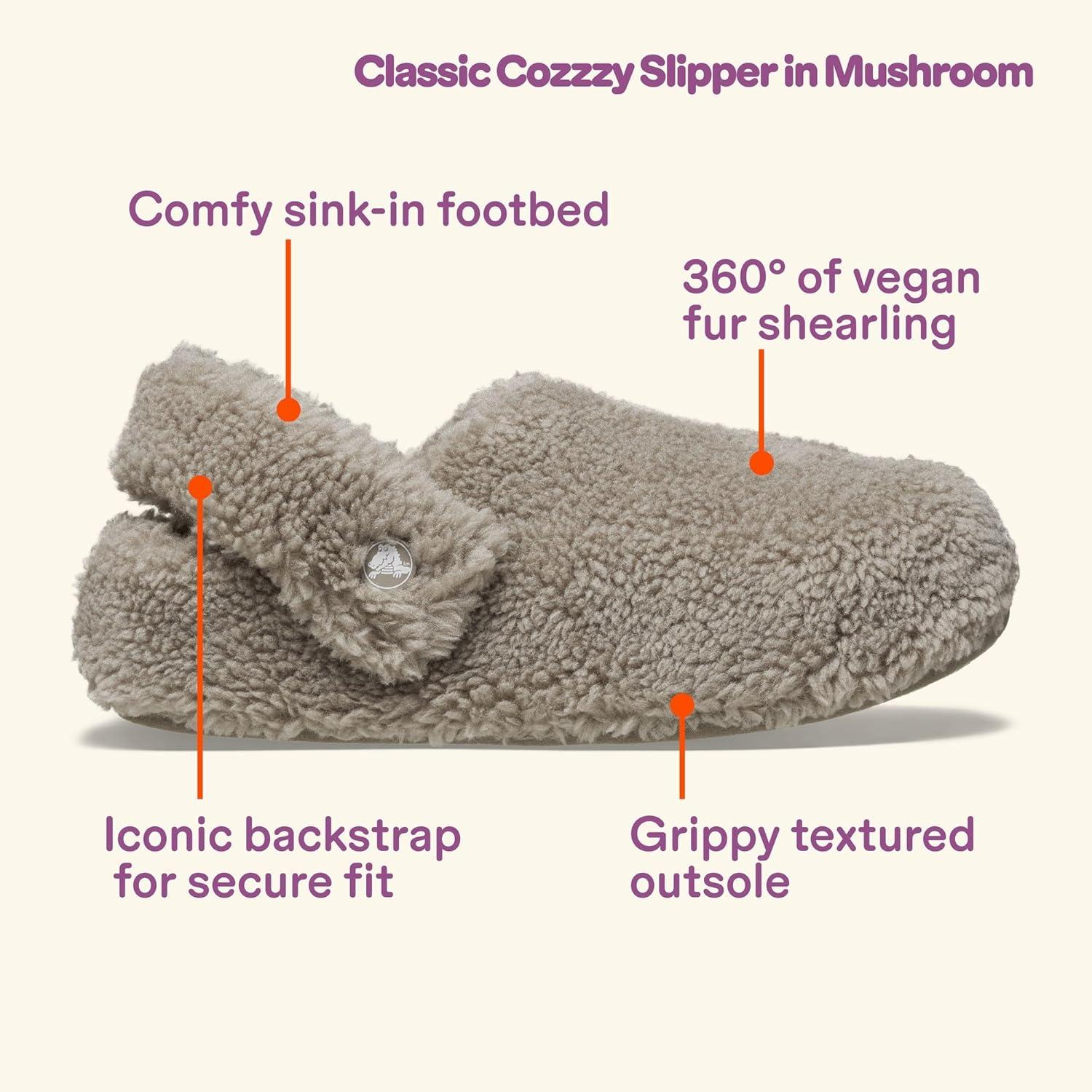 Crocs Unisex-Adult Classic Cozzzy Slipper, Fuzz Lined House Slippers for Women and Men(Mushroom)