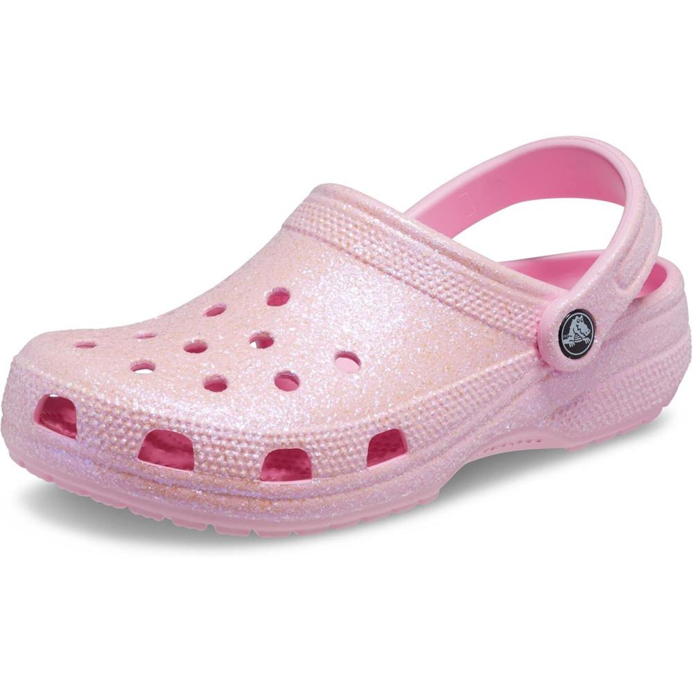 Introducing the Crocs Unisex Classic Glitter Clogs, where iconic comfort meets dazzling style! Experience the revolution in footwear that offers unparalleled comfort with a chic, glittery twist. Designed for the fashion-forward individual who values both style and comfort, these clogs are perfect for daily wear, from casual outings to fun-filled adventures. With their lightweight construction and cushioned support, these clogs ensure that every step is a joy. The ethylene vinyl acetate upper, insole, and outsole work harmoniously to deliver a 360-degree comfort experience, making these clogs a staple in footwear for both men and women. Embrace the ease of finding your perfect fit with a sizing guide that recommends sizing down for the best fit. Whether youre stepping out for a casual walk in the park or enjoying a day at the beach, these clogs are your go-to solution for breathable, comfortable footwear. And with the option to personalize your clogs using Jibbitz charms, you can add a unique flair to your style. These clogs are not just durable and comfortable, they redefine the essence of everyday footwear, making them a must-have for any wardrobe.