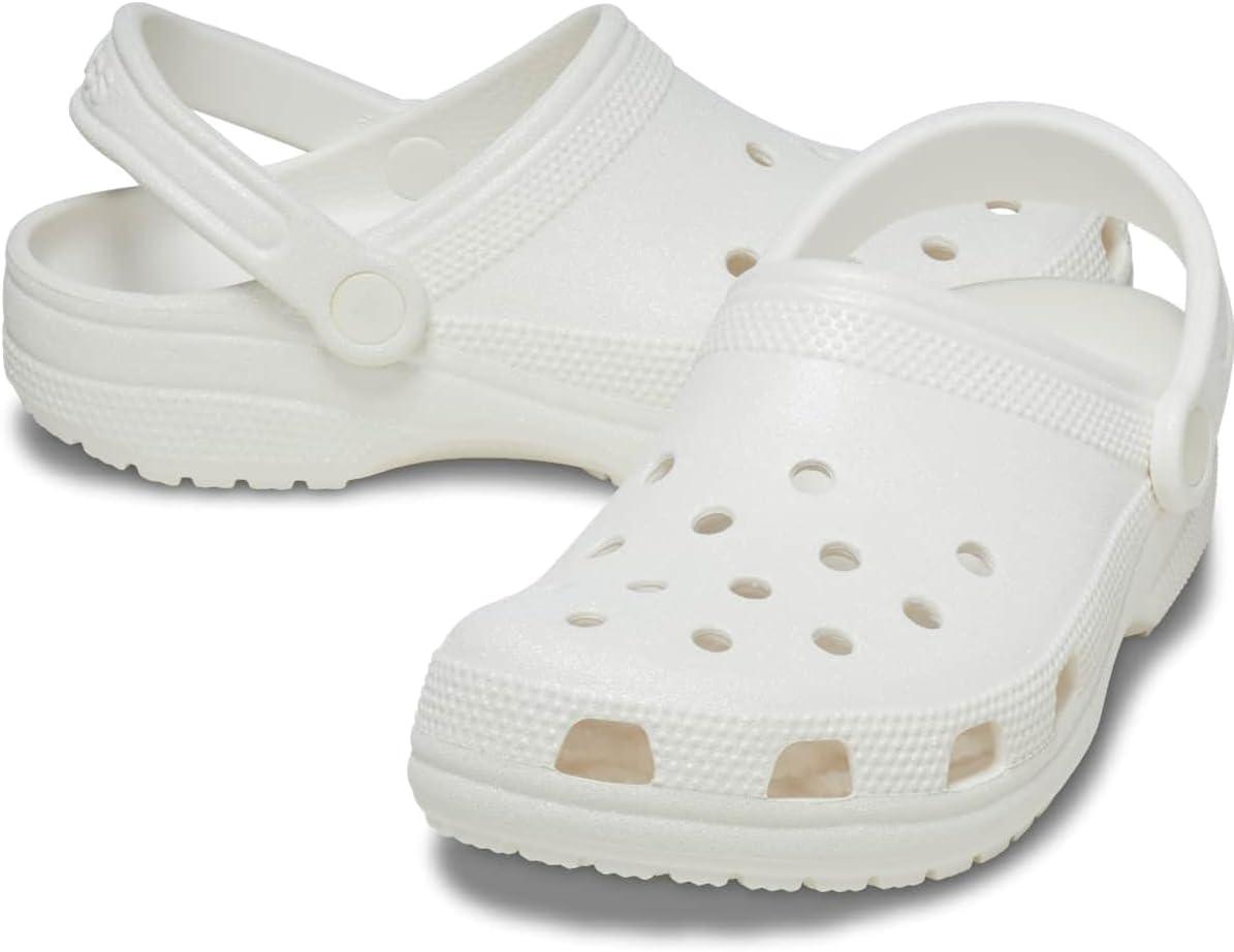 Crocs Unisex-Adult Classic Glitter Clogs(White)