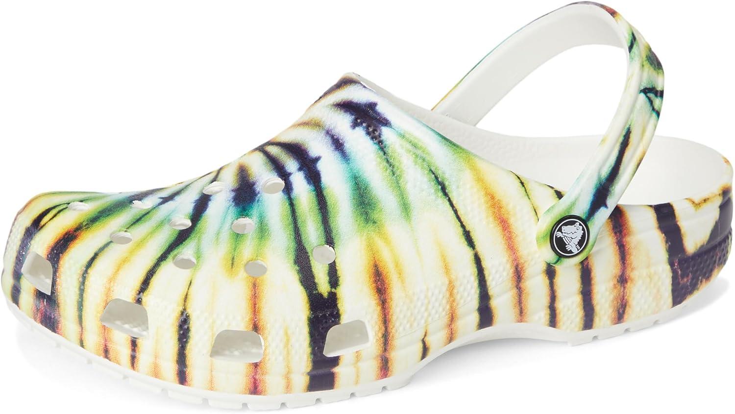 Crocs Unisex-Adult Classic Graphic Clogs(Multi/Green Tie Dye)