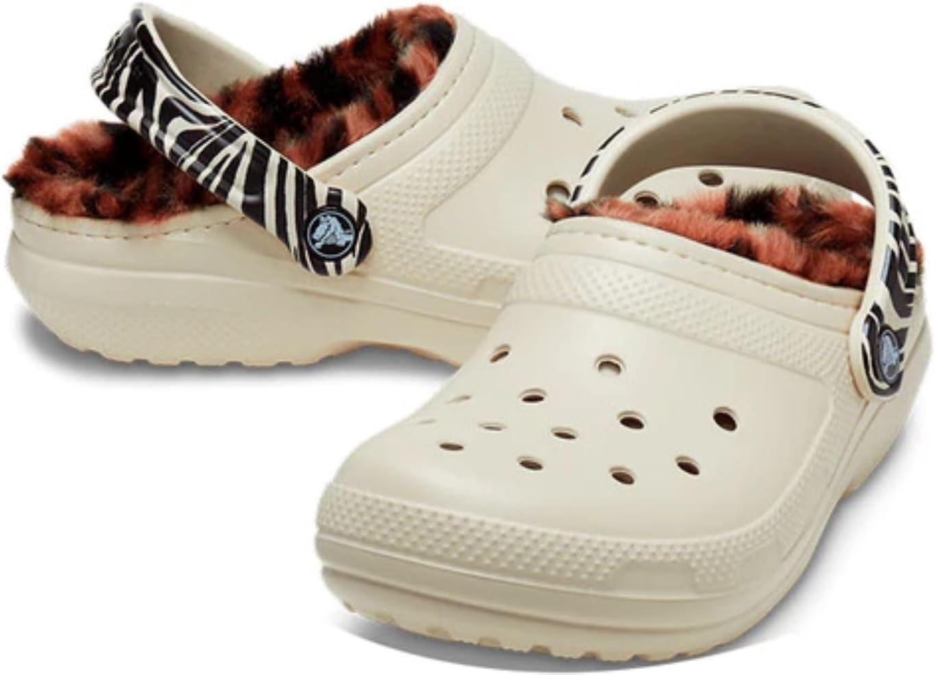 imageCrocs Unisex Adult Classic Lined Clog Fuzzy SlippersBoneMulti Animal Remix