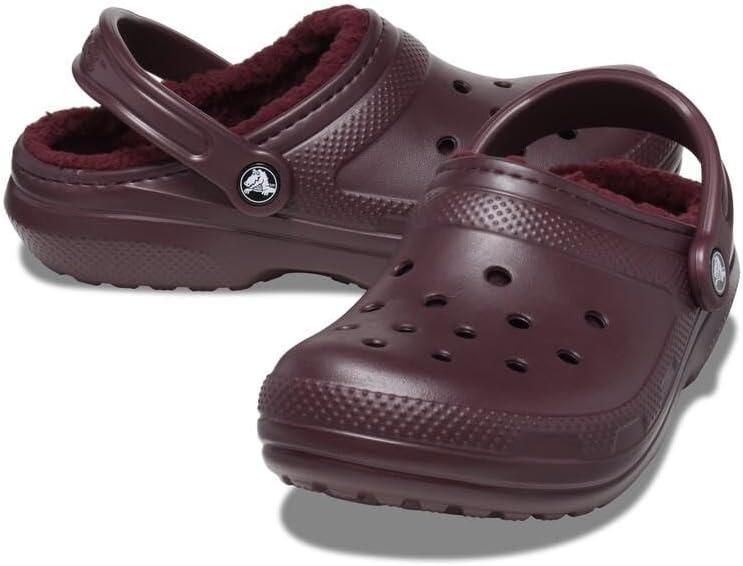 Crocs Unisex Adult Classic Lined Clog Fuzzy Slippers(Dark Cherry)
