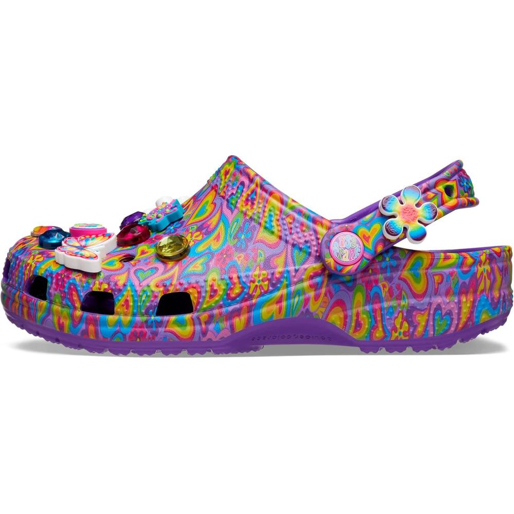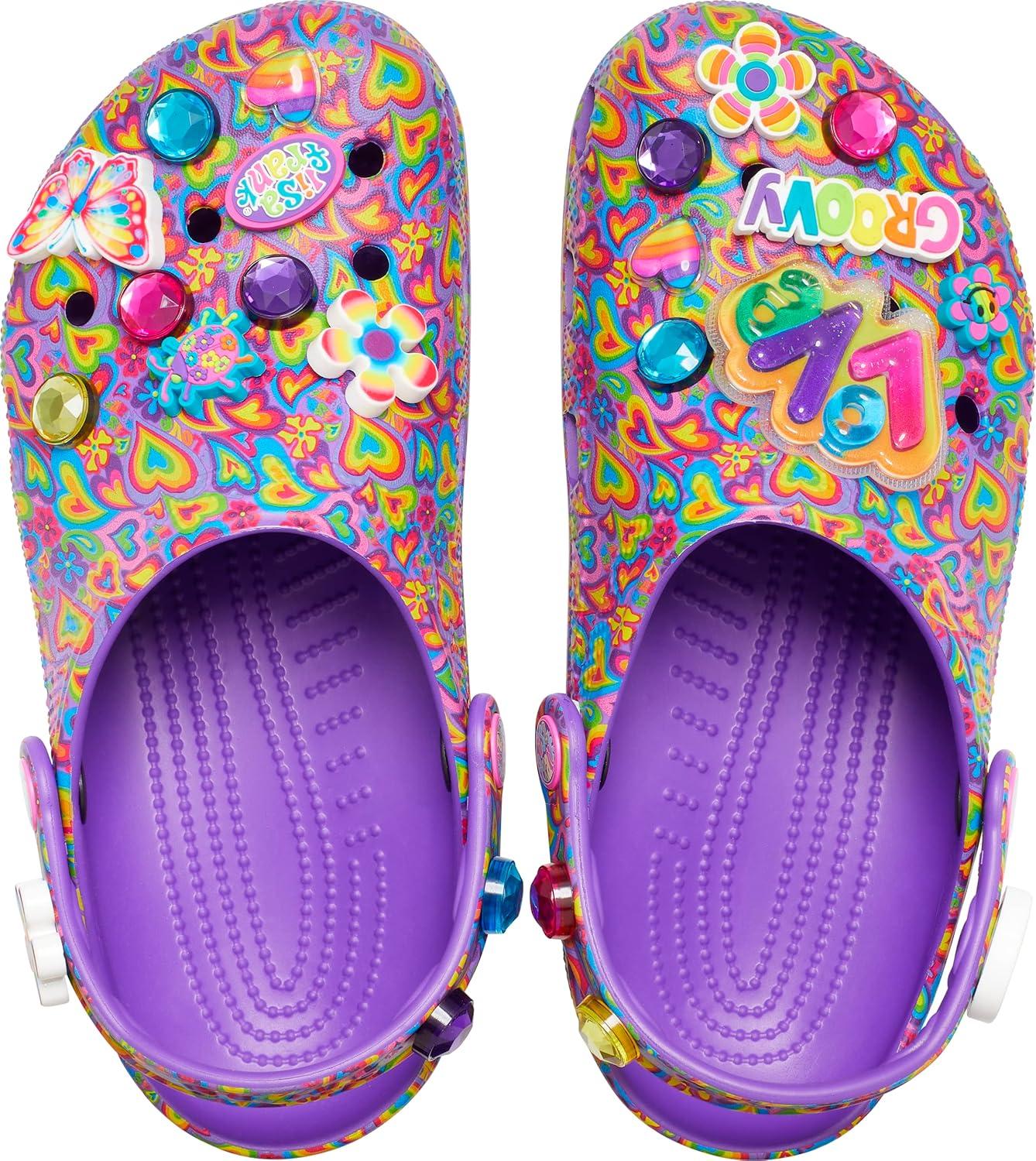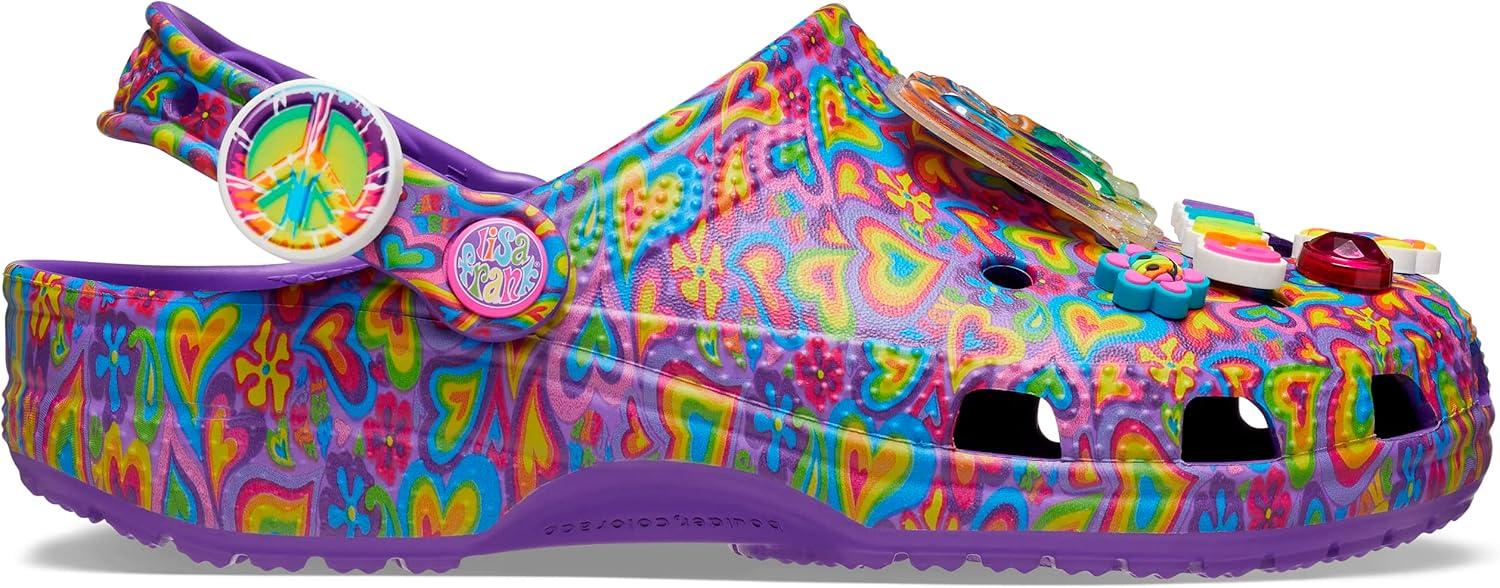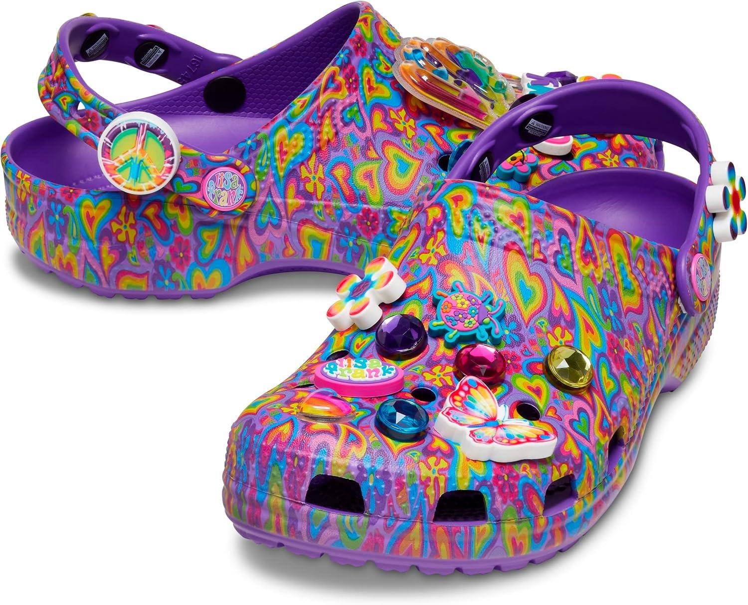 Brighter than ever and bursting with personality, our limited-edition Lisa Frank x Crocs clogs are the pair to wear when you’re craving some color. Each shoe is decked out in signature Lisa Frank designs and includes a whimsical and wonderful collection Jibbitz charms.