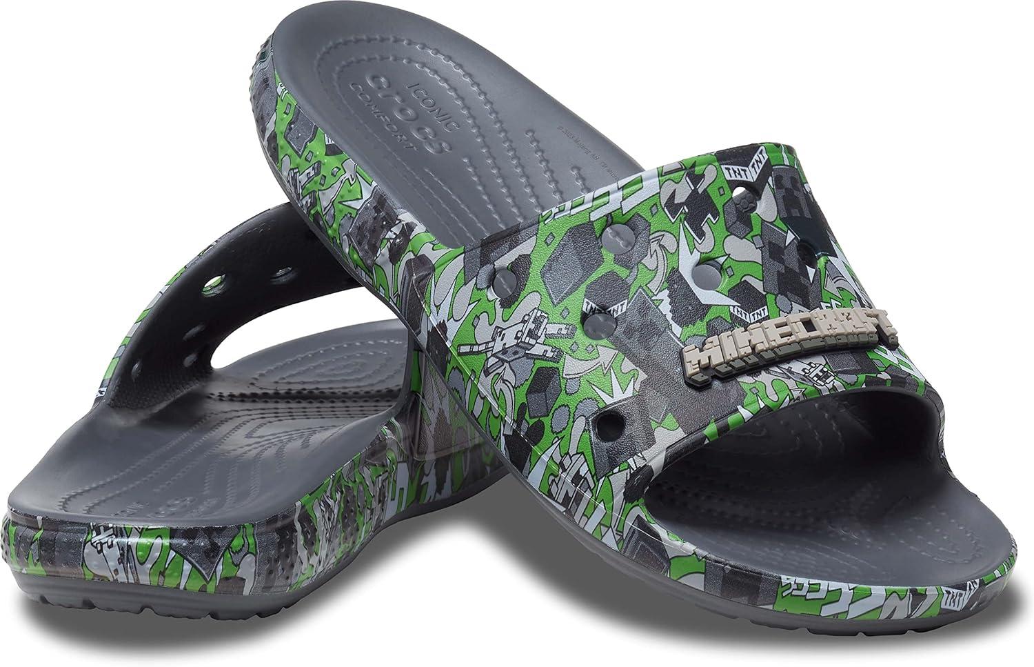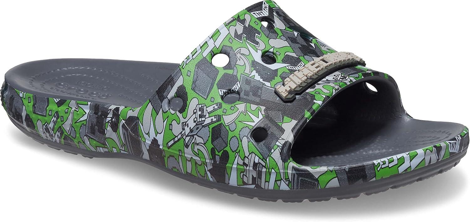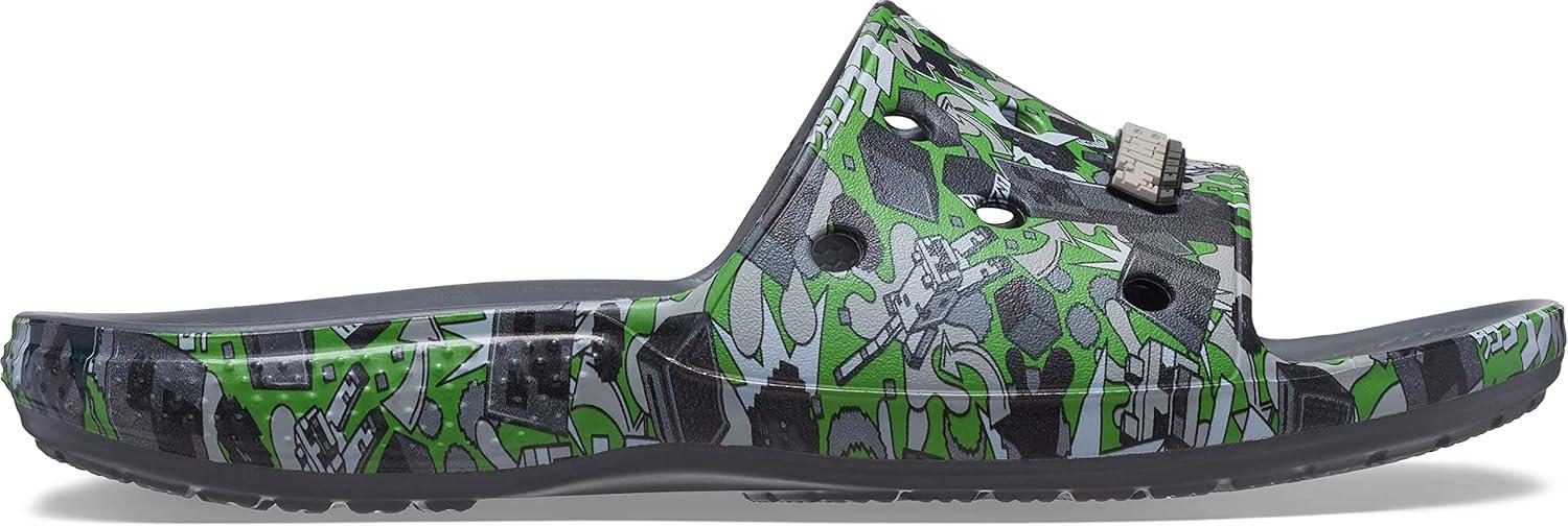 Sssssss…Boom! You can’t tame those pesky creepers but you can finally get a hold of 'em with this creeper-inspired look that’s exploding with style. © 2023 Mojang AB. All Rights Reserved. Minecraft, the MINECRAFT logo and the MOJANG STUDIOS logo are trademarks of the Microsoft group of companies. This version of the Classic Crocs Slide now sports our unique Minecraft graphic. Plus, each slide has room for 13 charms so you can load up your sandals with tons of personality. Original Croslite™ foam cushion will keep you comfortably supported from the beach to backyard gatherings and beyond. Slide into a new favorite!