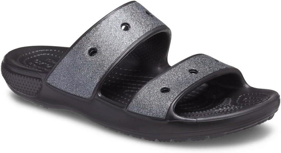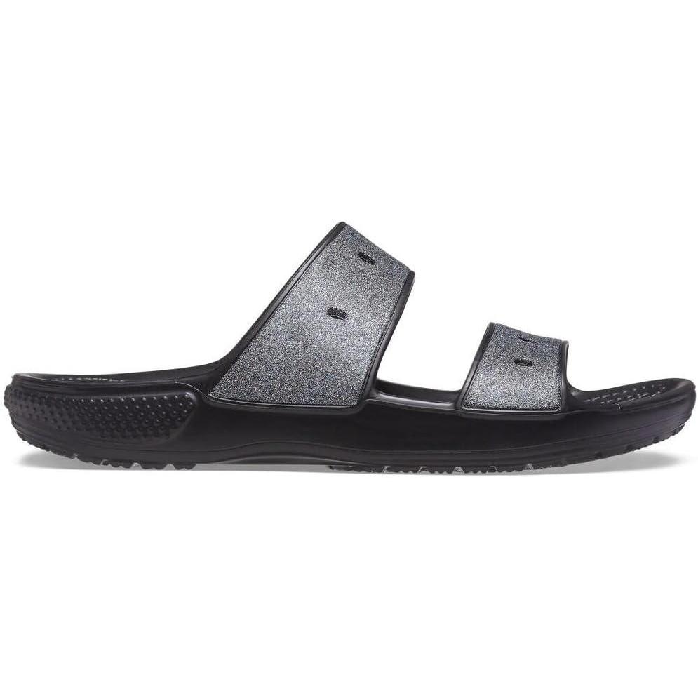 Crocs Unisex Adult Classic Two-strap Slide Sandals(Black/Glitter Rainbow)