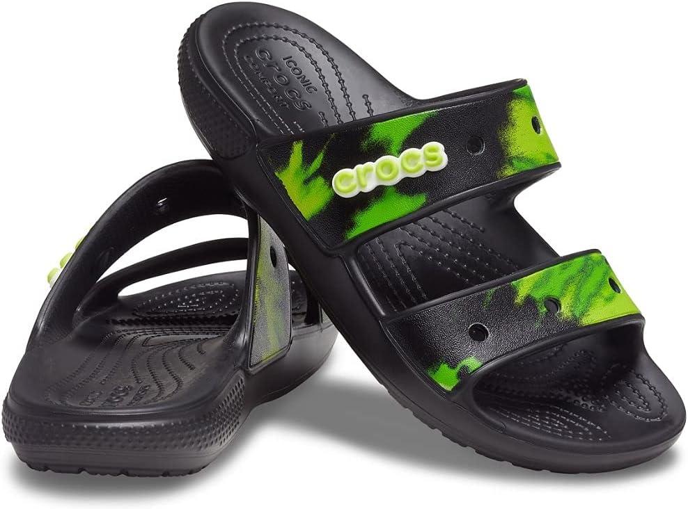 Crocs Unisex Adult Classic Two-strap Slide Sandals(Black/Lime Punch)