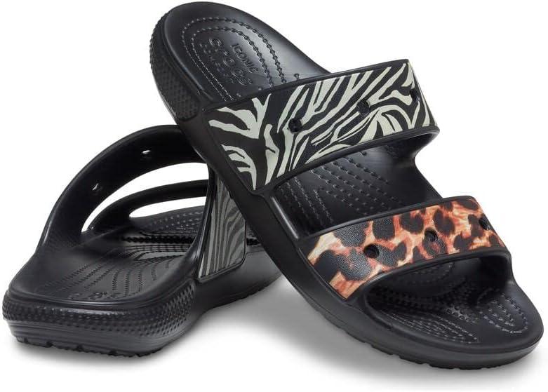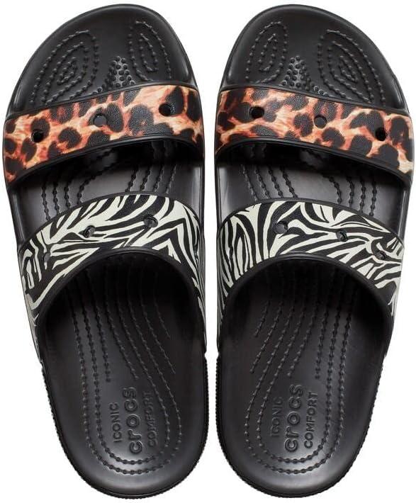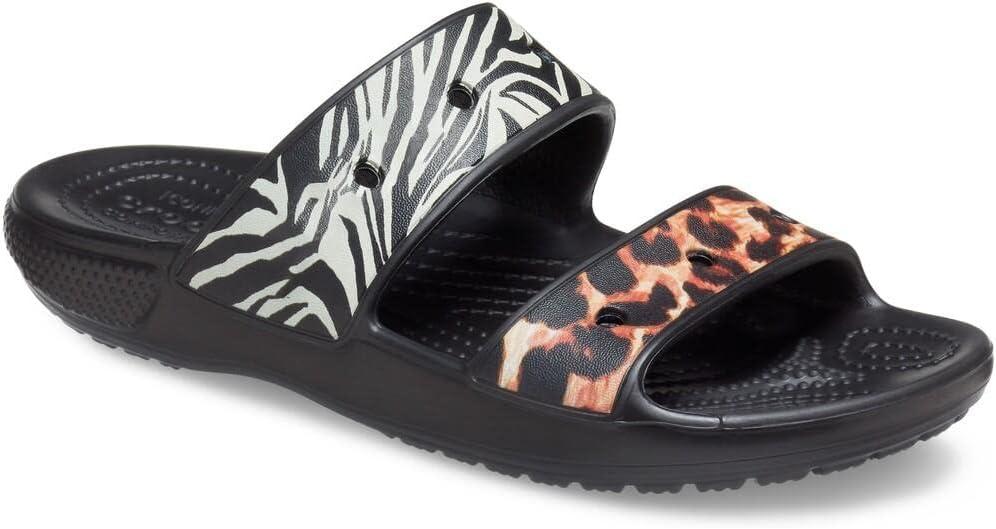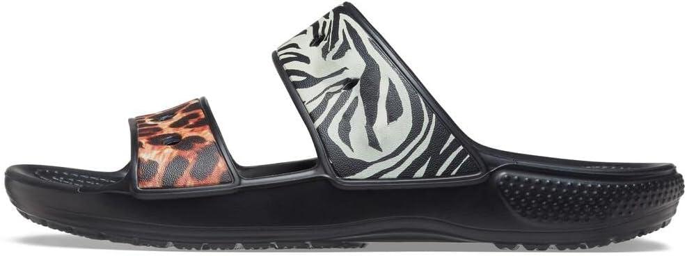 Crocs Unisex Adult Classic Two-strap Slide Sandals(Black/Multi Animal Remix)