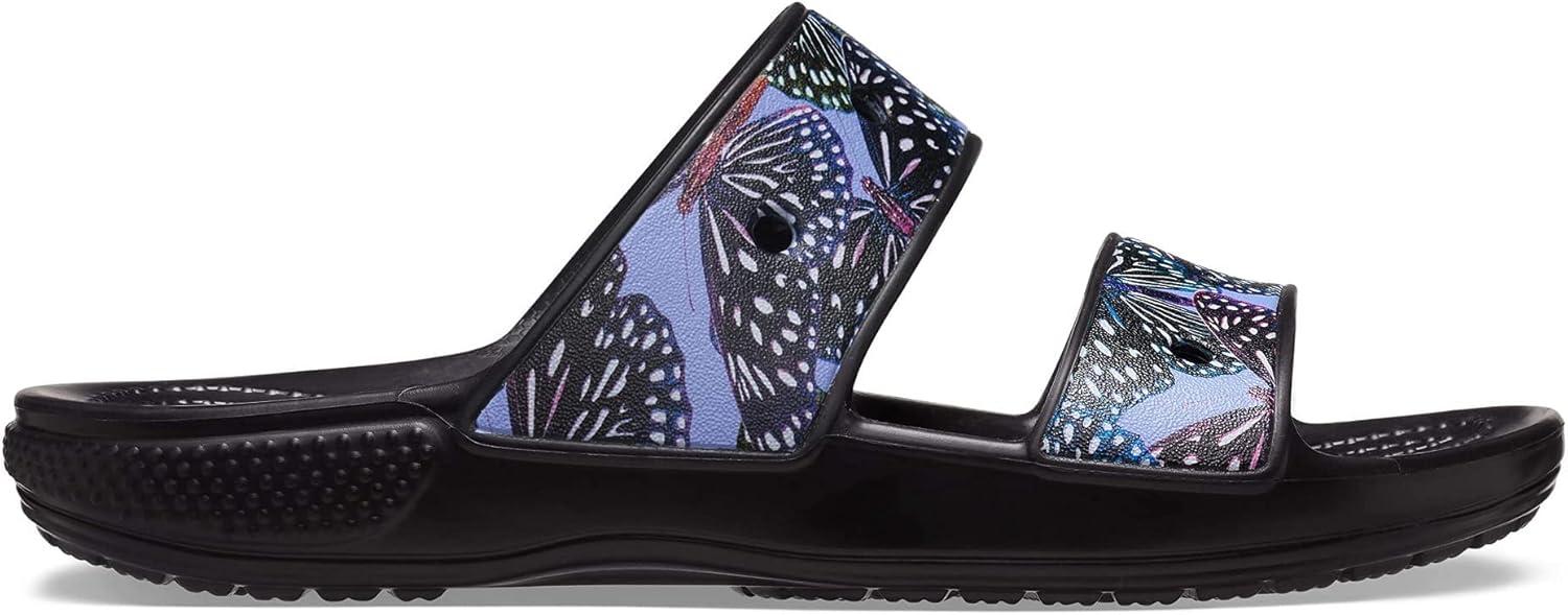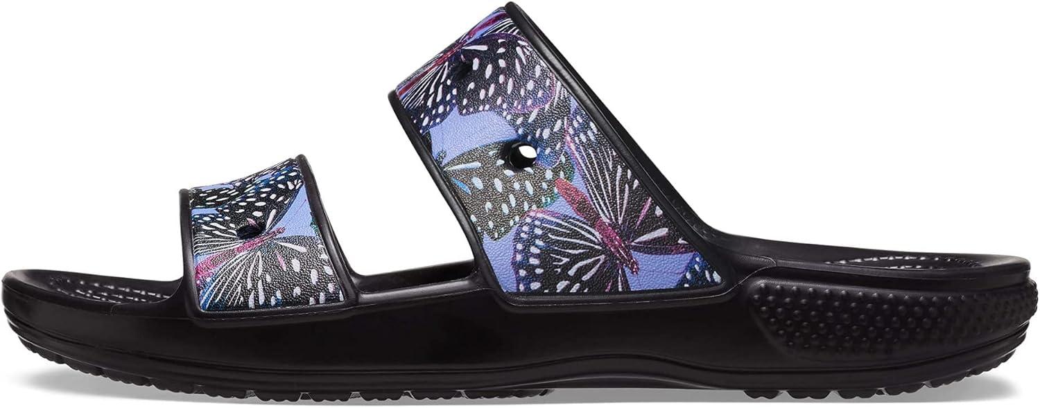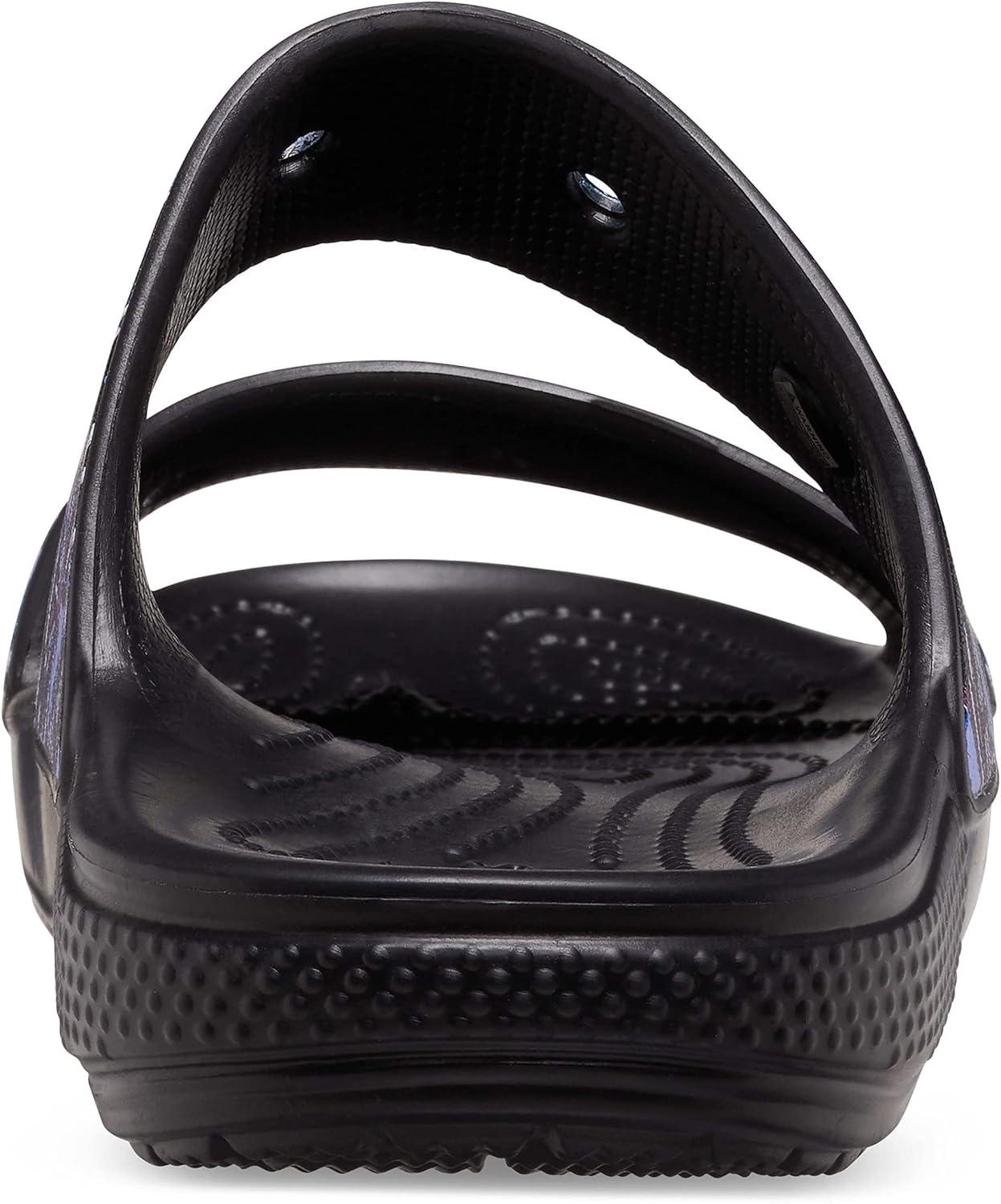 Crocs Unisex Adult Classic Two-strap Slide Sandals(Black/Multi Glitter)