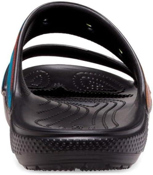 The look and feel of our comfortable Classic Clog and Crocs Slide, now in sandal form. Two upper straps offer even more comfort and foot security, and seven holes on each shoe allow you to personalize with Jibbitz charms. We'll even get you started by including a Crocs logo charm. Original Croslite foam cushion will keep you supported from the beach to backyard gatherings and beyond.