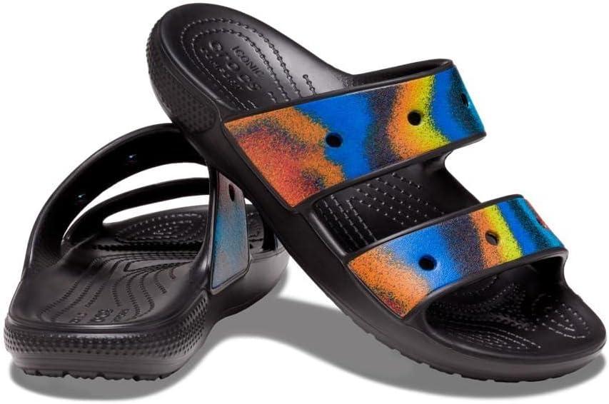 Crocs Unisex Adult Classic Two-strap Slide Sandals(Black/Spray Dye)