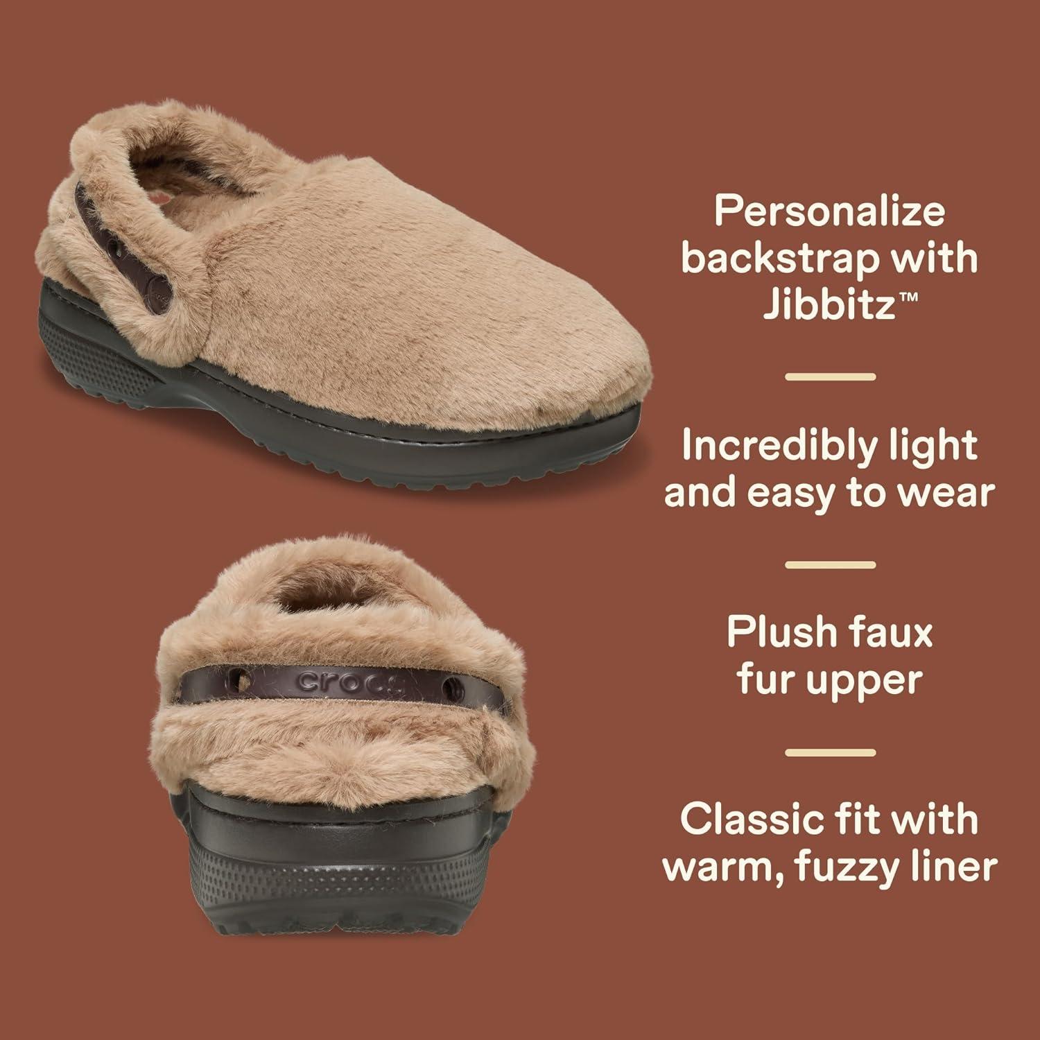 Crocs Unisex-Adult Classic Unfurgettable Lined Clogs, Fuzzy Slippers(Milk Chocolate)