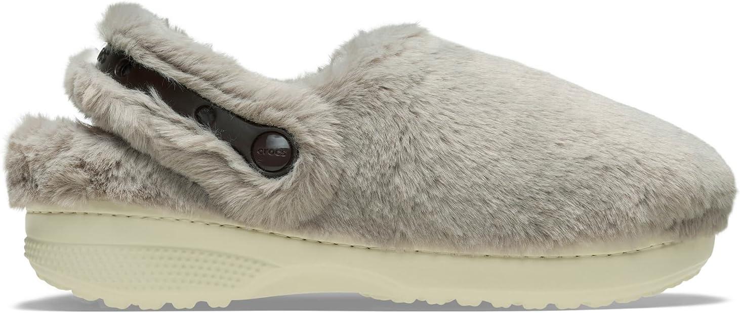 For ultimate cozy comfort and style, check out the new Crocs Classic Unfurgettable Clogs. This new style combines the versatility of our Classic Lined Clog with the all-day comfort of our Cozy Slipper. The faux fur upper provides the coziness of a house slipper, and the versatility of the Croslite outsole takes you wherever your day goes. The sink-in soft footbed offers added comfort, while the faux fur backstrap features Jibbitz holes for personalization. Slip into the Classic Unfurgettable Clog to maximize cozy comfort and style as you go about your day. Polyester upper, lining, and insole. Pivoting faux fur backstrap with Jibbitz holes ensures a snug fit and personal flair. Slip-on style. Low-top design Round toes. EVA outsole.