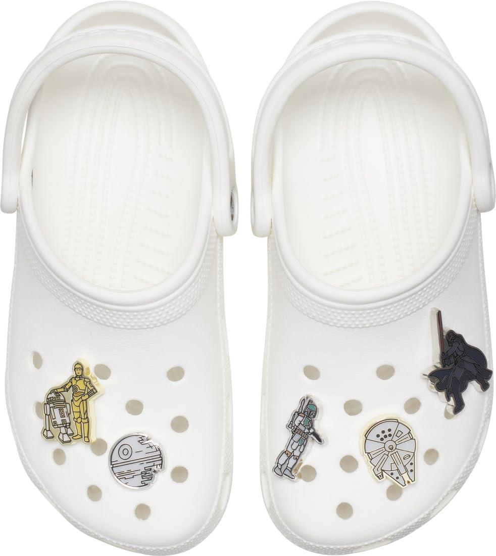The Crocs Baby Yoda Star Wars Collection Multi Packs are the perfect charms to add a quirky look to your casual footwear. These Baby Yoda motifs come in different sizes and shapes, making them perfect for fans of Star Wars. Add them easily to any footwear like sandals, slides, flip-flops, boots, lined clogs, wedges, and platforms and you are good to go. Crafted with durable polyvinyl chloride, these charms effortlessly express your personalized style.