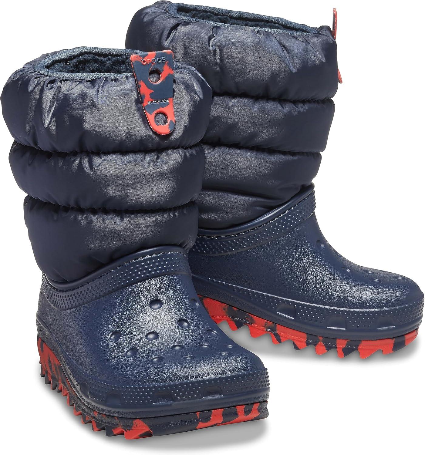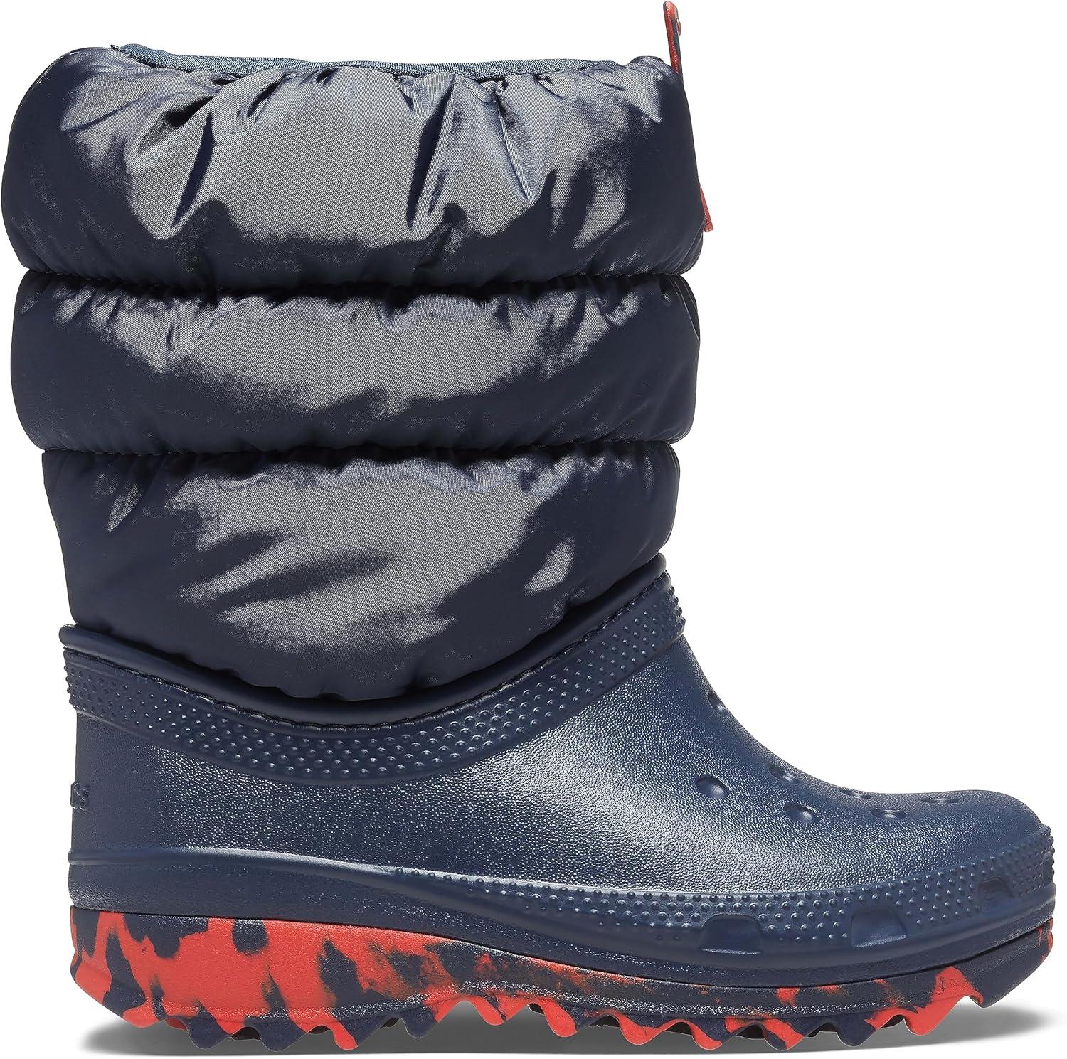 Crocs Unisex-Child Classic Lined Neo Puff Boot Snow(Navy)