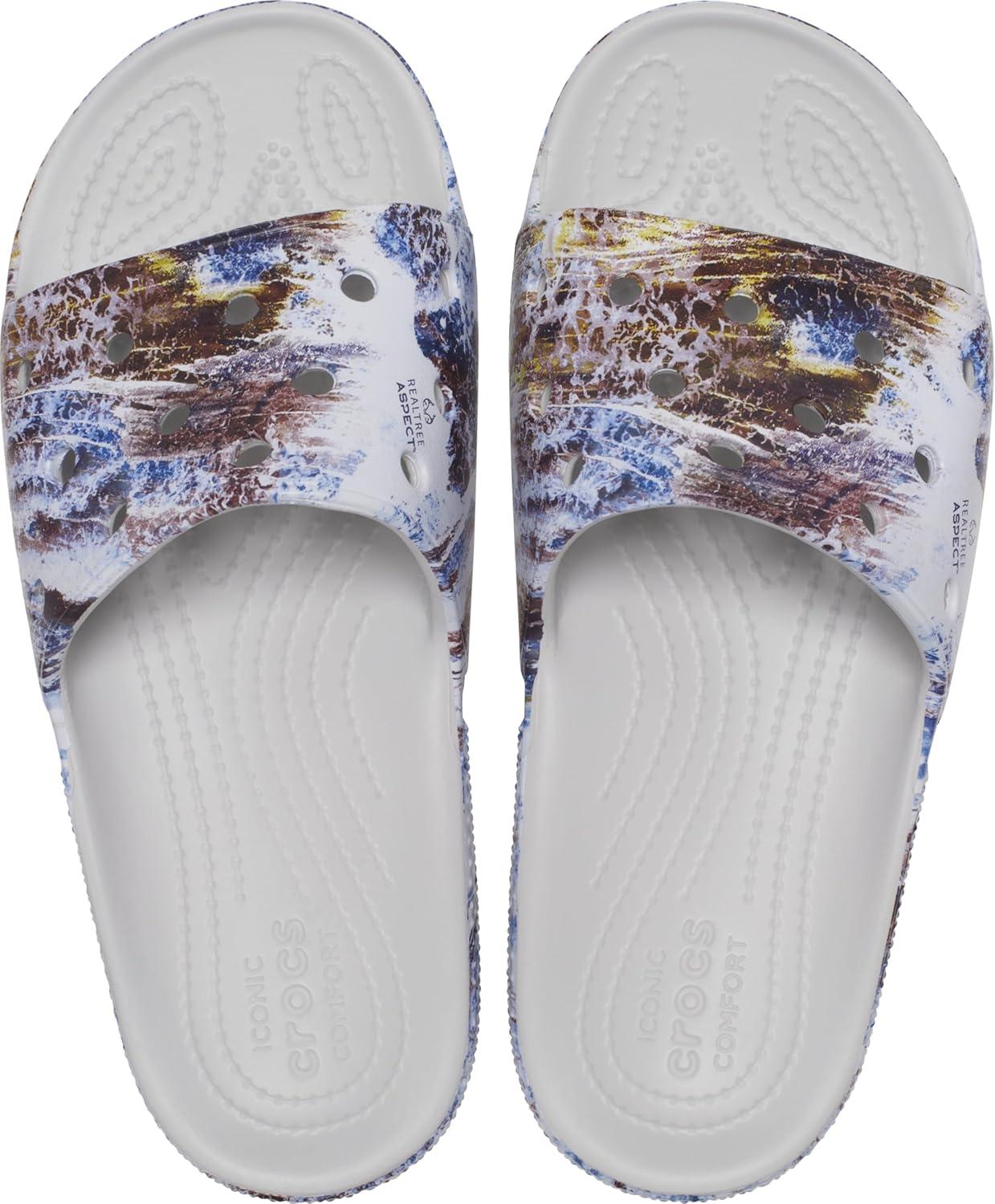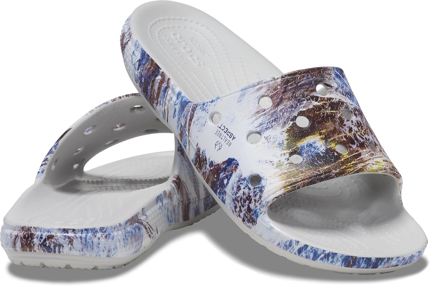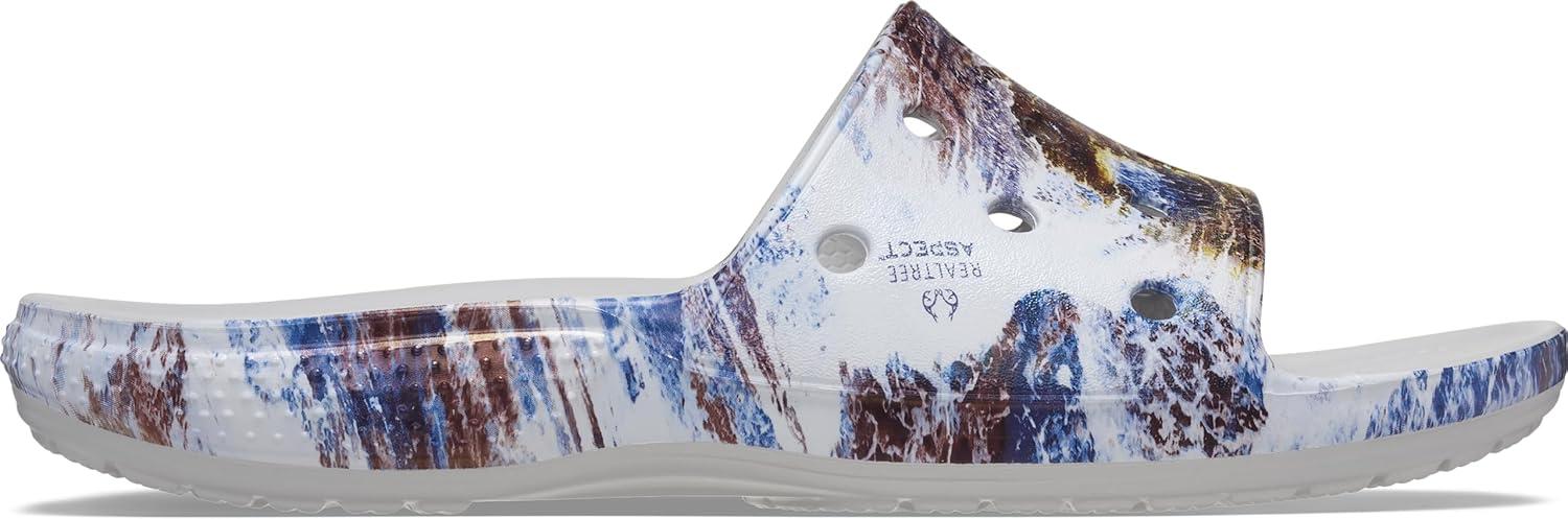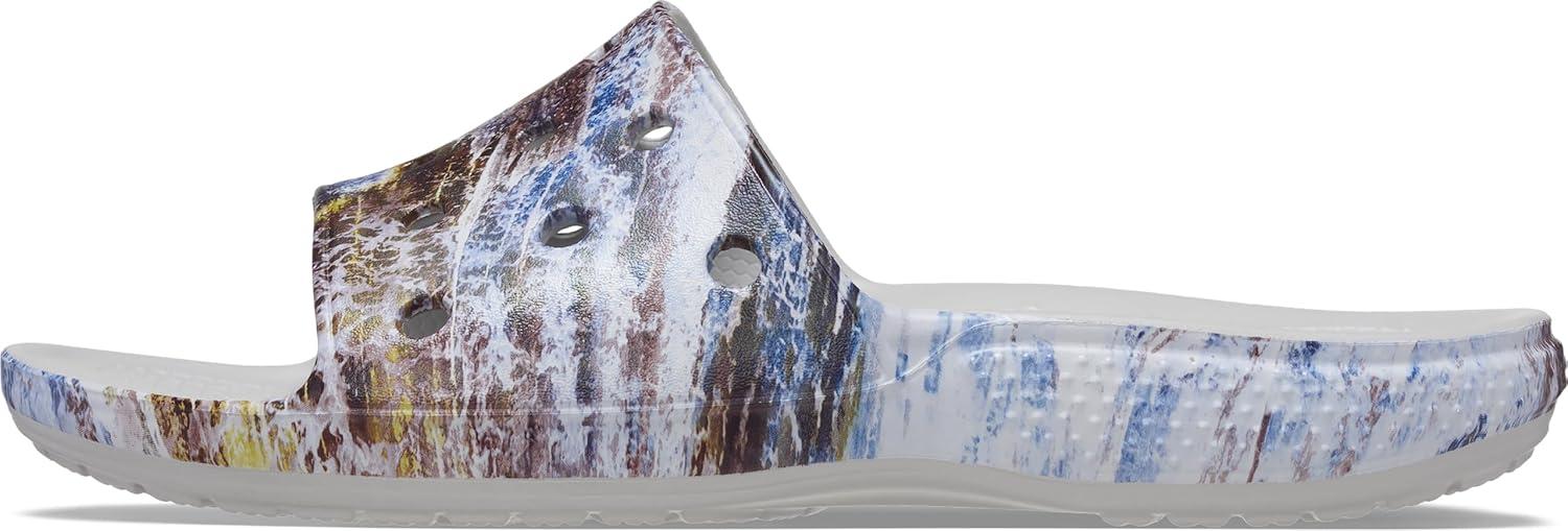 This version of the Classic Crocs Slide now sports a spray paint camo graphic. Plus, each slide has room for 13 charms so you can load up your sandals with tons of personality. Original Croslite™ foam cushion will keep you comfortably supported after your run or for post-game activities. Slide into a new favorite!