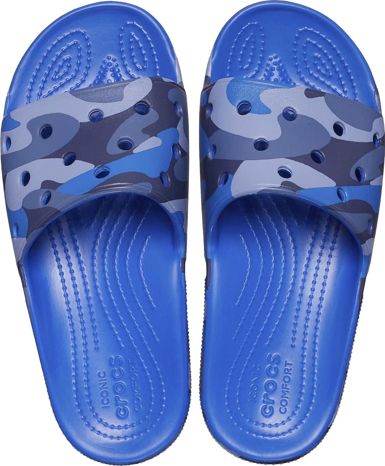 This version of the Classic Crocs Slide now sports a spray paint camo graphic. Plus, each slide has room for 13 charms so you can load up your sandals with tons of personality. Original Croslite™ foam cushion will keep you comfortably supported after your run or for post-game activities. Slide into a new favorite!