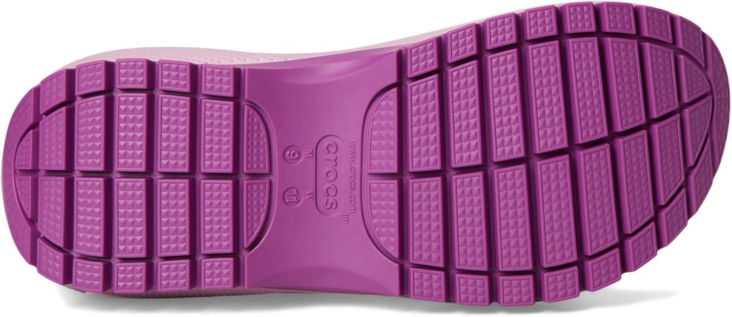 The look and feel of our Classic Mega Crush Clog is now available in sandal form. Introducing the Classic Mega Crush Sandal, featuring an enhanced rubber tread, updated detailing around the outsole and a platform ready to take any outfit to the next level. A two-strap upper and secure backstrap help ensure a secure fit, while boasting holes for personalization with Jibbitz™ charms. Are you ready for your new crush?