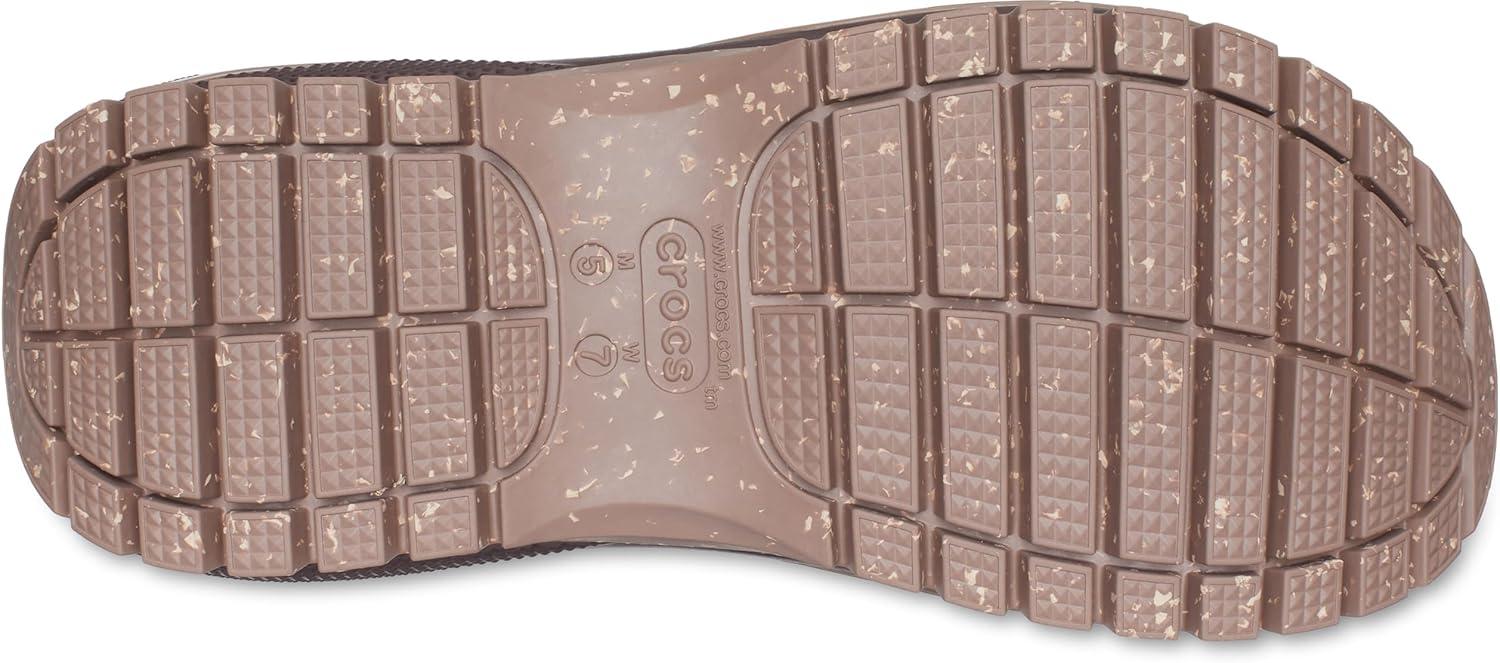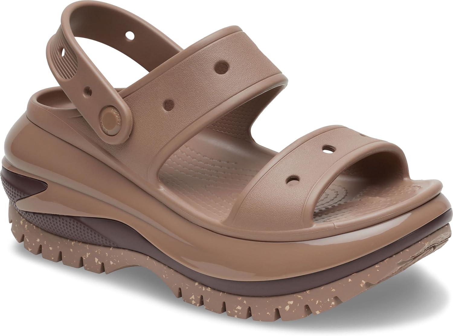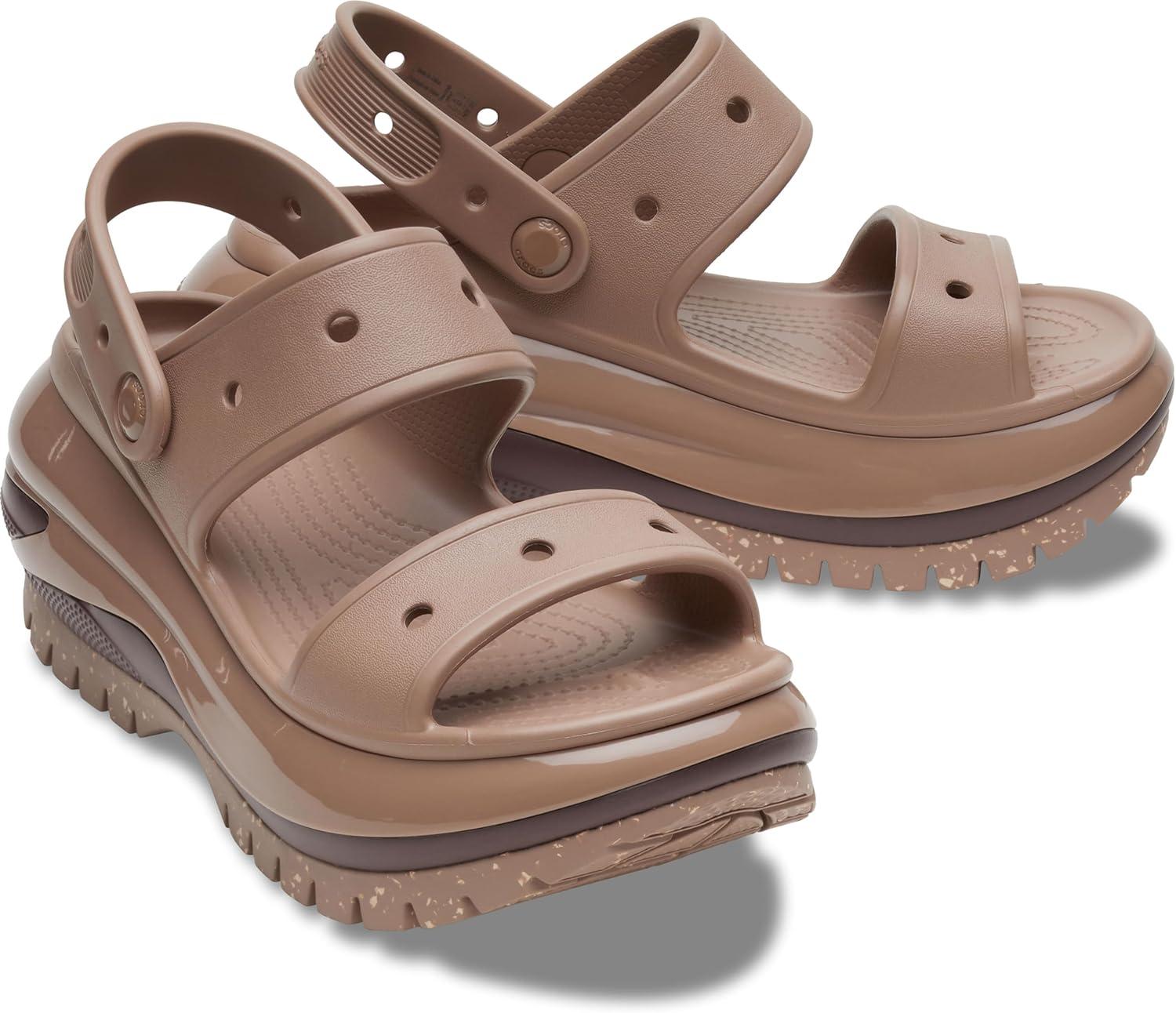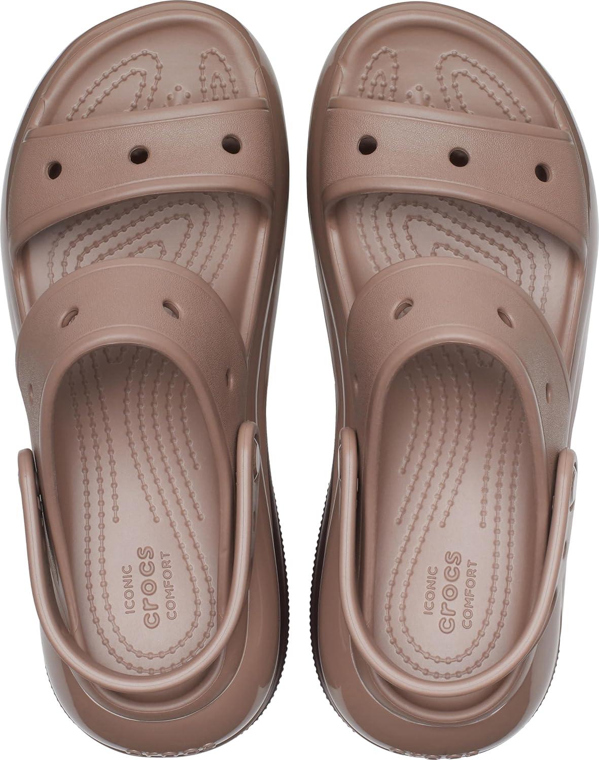 The look and feel of our Classic Mega Crush Clog is now available in sandal form. Introducing the Classic Mega Crush Sandal, featuring an enhanced rubber tread, updated detailing around the outsole and a platform ready to take any outfit to the next level. A two-strap upper and secure backstrap help ensure a secure fit, while boasting holes for personalization with Jibbitz™ charms. Are you ready for your new crush?