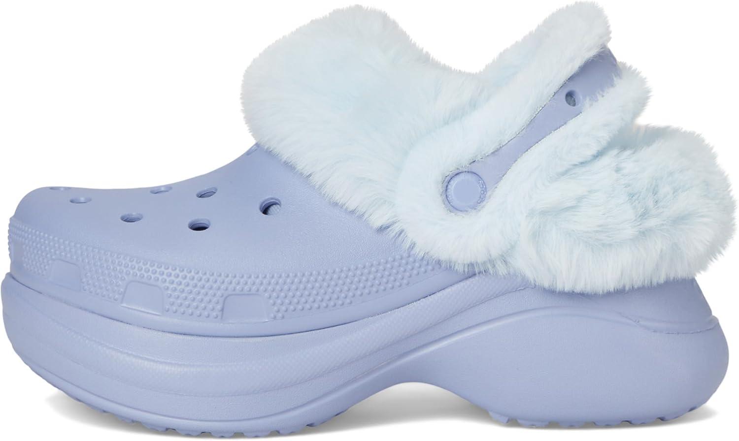 Take your style to new heights with the Crocs Bae Lined Clogs, now with a soft fuzzy liner for added warmth and coziness. Designed with an ultra-contoured outsole, this clog delivers the bold look and comfort you love, while the fuzzy lining keeps you warm no matter where you go. Ethylene vinyl acetate upper and insole. Polyester lining. Textured and Trendy Details: Features stylish textured accents around the heel, toe box, and collar, blending attitude with everyday comfort. Personalized for You: Customizable backstrap with room for Jibbitz charms lets you make this bold clog truly your own. Pull-on with slingback strap closure. Platform heel. Low-top profile. Rounded toe design. Ethylene vinyl acetate outsole.