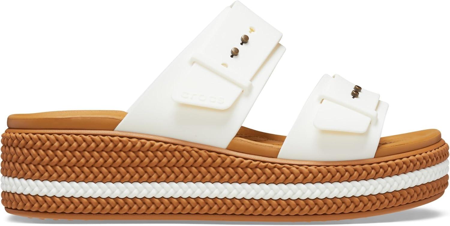 Crocs Women’s Brooklyn Buckle Low Wedges(Chalk/Tan)