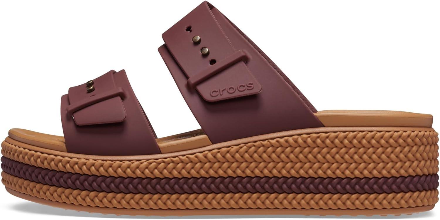 Crocs Women’s Brooklyn Buckle Low Wedges(Dark Clay)