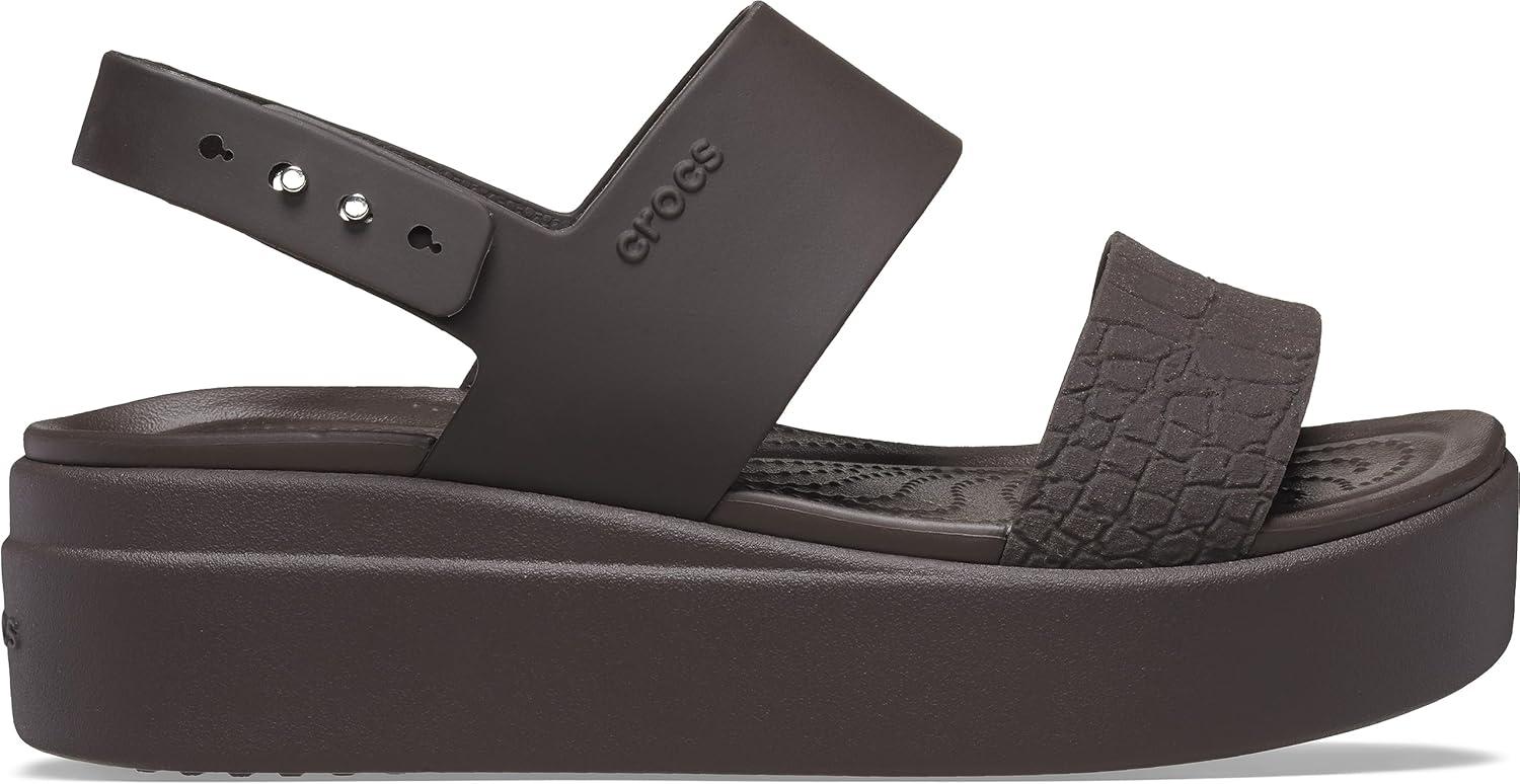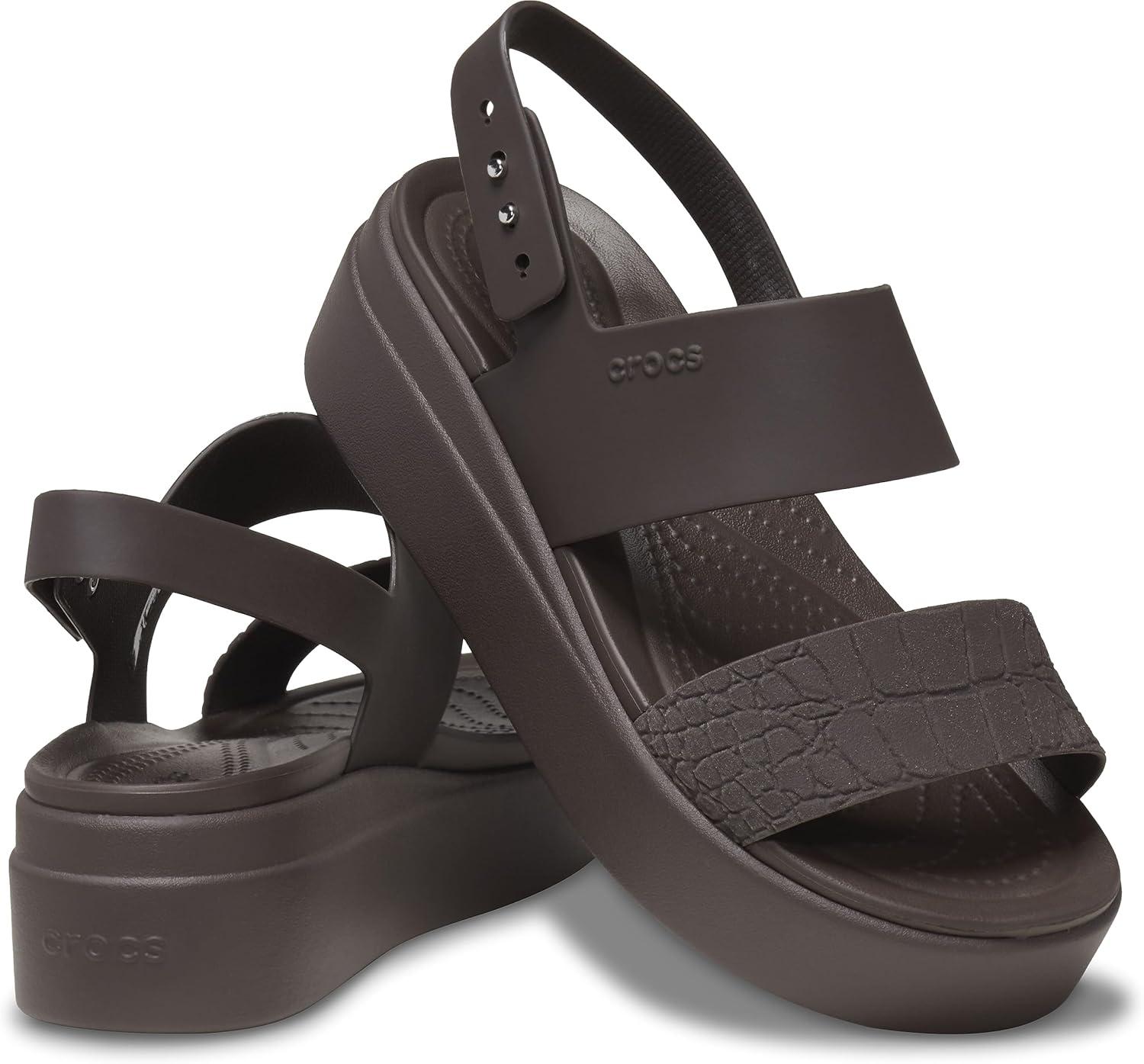 Crocs Brooklyn Low Wedge for Women – Adjustable Buckle Heel Straps with Pushpin Closure, Flexible, and All-Day Wear Flame/Mushroom 6 M