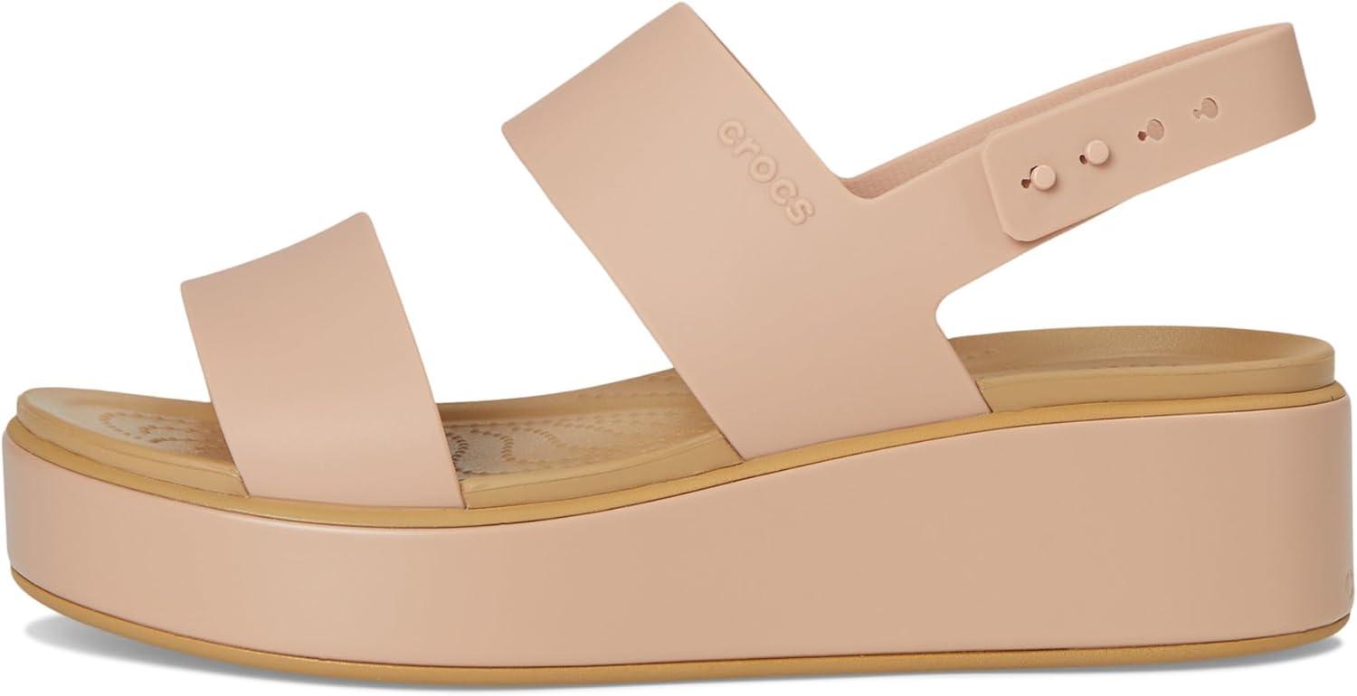 Crocs Brooklyn Low Wedge for Women – Adjustable Buckle Heel Straps with Pushpin Closure, Flexible, and All-Day Wear Flame/Mushroom 6 M