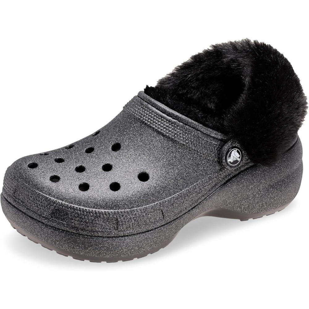 Crocs Womens Classic Lined Platform Clogs(Black Glitter)