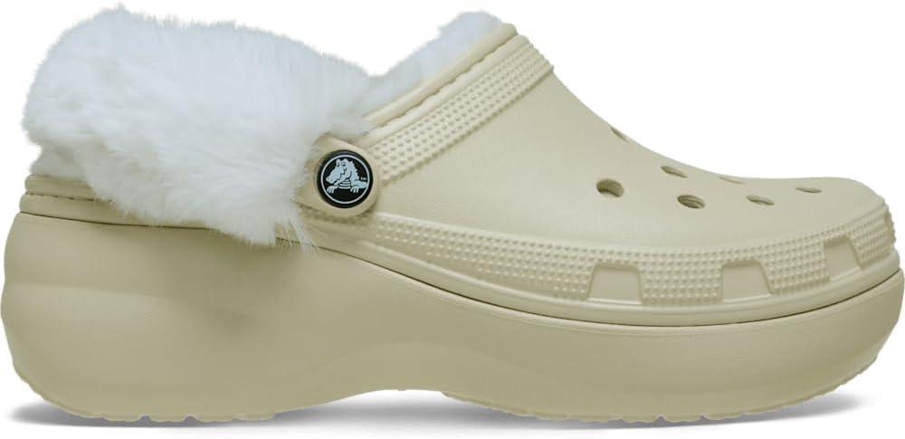 Crocs Womens Classic Lined Platform Clogs(Bone Fuzzy)