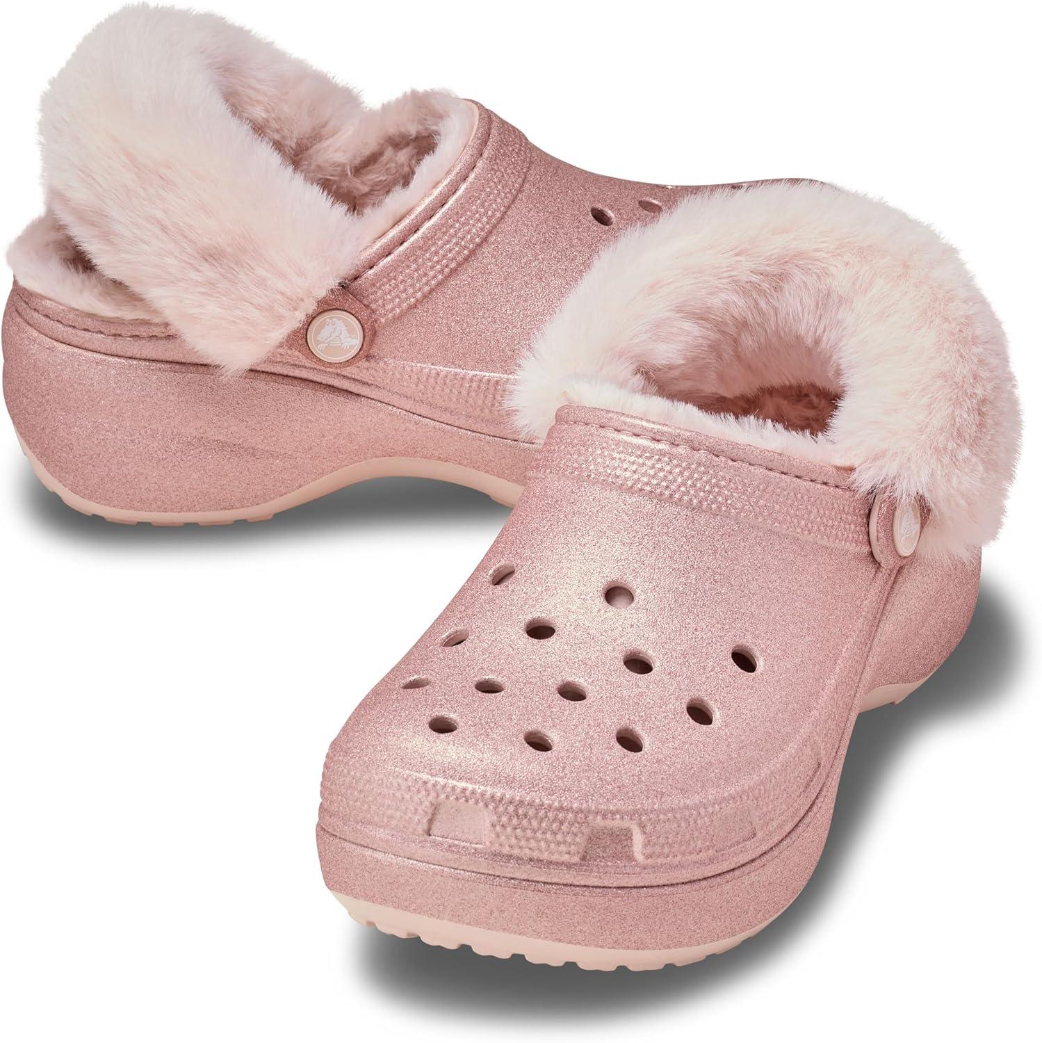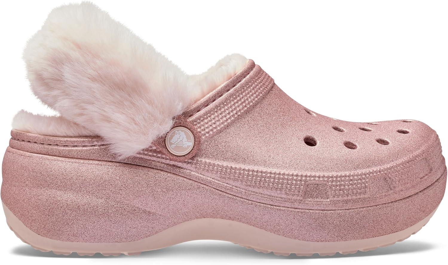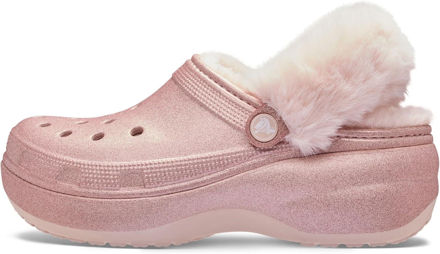 Crocs Women's Classic Platform Fuzz-Lined Clogs(Quartz Glitter)