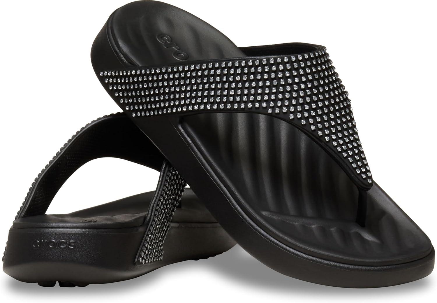 Crocs Women’s Getaway Triangle Flip Flops(Black Gems)