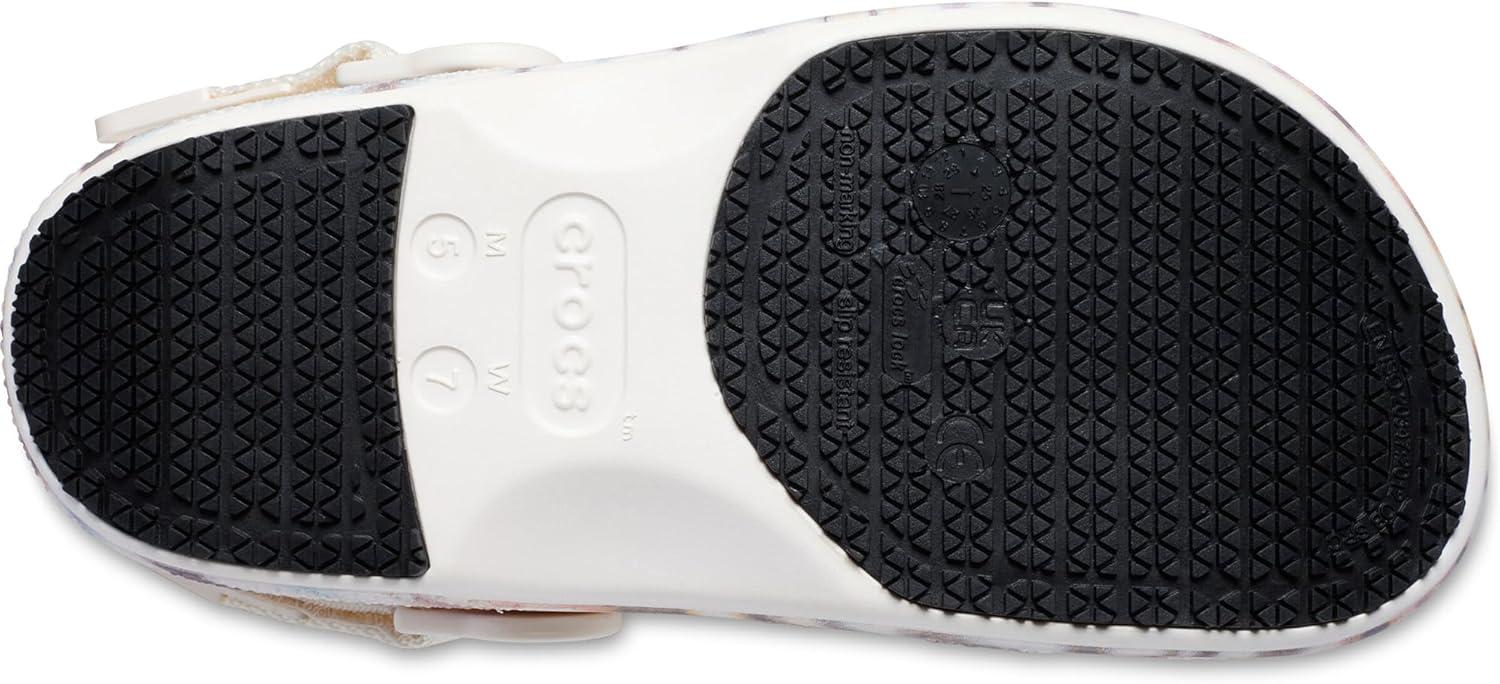 Enjoy the comfort and style of the iconic clog, now with a slip-resistant outsole and unique adjustable heel strap. In this versatile clog, you'll have the benefit of enhanced traction and security, which can meet a variety of needs. The specially-designed heel strap adjusts to be extra secure, and is easier to get on and off with its textured pull tabs. Features the same Crocs Lock slip-resistant treads as found in the Crocs At Work collection. Plus, Jibbitz holes on the upper makes them easy to personalize. The Classic SR Clog offers the opportunity to be confident, secure and comfortable in your own shoes. Find Your Size: We recommend sizing down (e.g. if you are a 7.5, size down to a 7). Meets EN ISO 20347:2012, OB, SRC. Meets ASTM F2913-11, CE certified. Waterproof ethylene vinyl acetate upper. Unlined. Ethylene vinyl acetate insole. Enclosed, round toe silhouette. Iconic Crocs Comfort. Pivotable, adjustable backstrap. Crocs Lock slip-resistant tread. Rubber outsole.